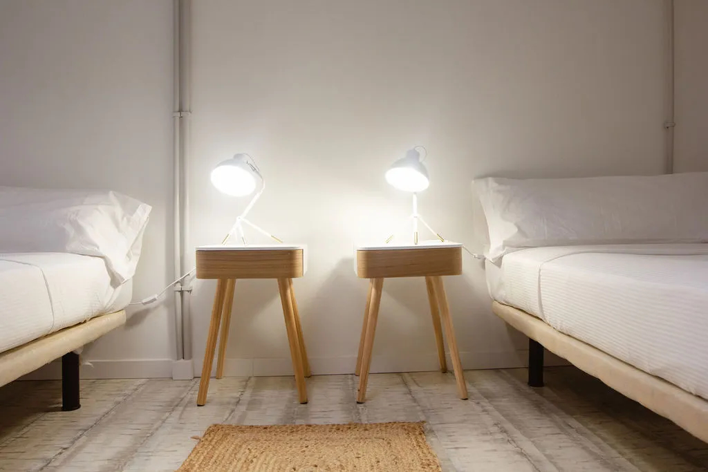 In this large room with four individual beds you have lockers for your belongings and a dedicated workstation. Nonetheless, you have free 24/7 access to the coworking space.